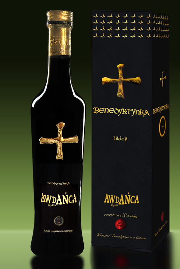 Benedyktynka Awdańca opata butelka z krzyżem 500 ml